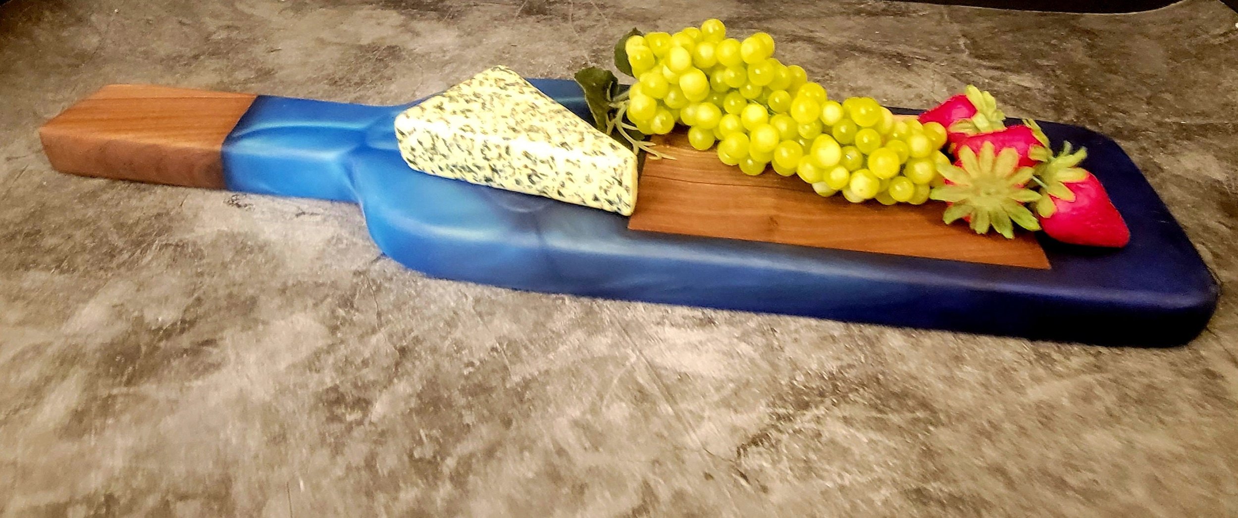 Introducing the Wine Bottle Charcuterie Board, meticulously crafted with the charm of a wine bottle silhouette. The unique shape brings a touch of elegance to your dining experience, making it a standout addition to your table.
